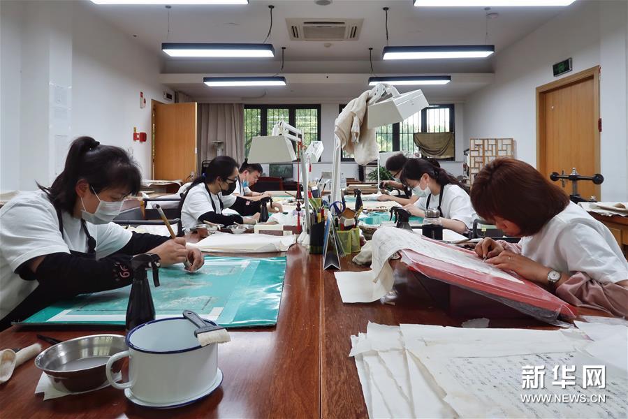 天一閣藏品修復(fù)部目前有修復(fù)師14人,每年約修復(fù)古籍14000余頁。據(jù)介紹,修復(fù)一冊古籍通常需要1至2個(gè)月,有的甚至需要1年以上。 新華社記者 鄭夢雨 攝
