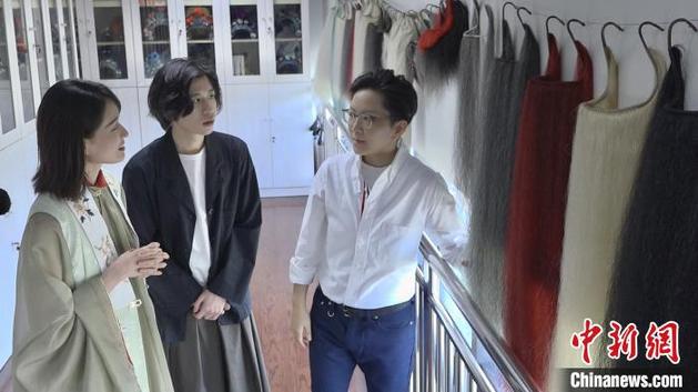 京劇名家王珮瑜帶領兩位主播走進上海京劇院。 康玉湛 攝