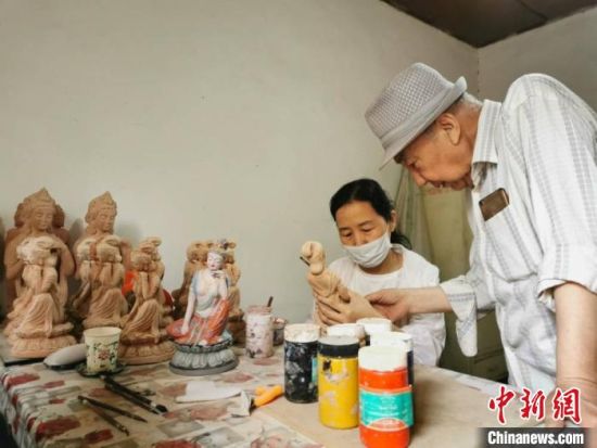 中新網(wǎng)蘭州9月2日電 (閆姣 馮志軍 高瑩)八旬敦煌彩塑藝人魯勤學(xué),耗時(shí)四十余載摸索敦煌彩塑的制作工藝,他還創(chuàng)新“立體”壁畫,將壁畫中的佛像形象都制作成了便于游客攜帶的彩塑。“我特別想通過自己微薄的力量把家鄉(xiāng)推介出去,想讓大家都知道敦煌彩塑的魅力。”他說。