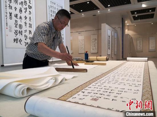 圖為朱群和他的敦煌漢簡書體?!「攥?nbsp;攝