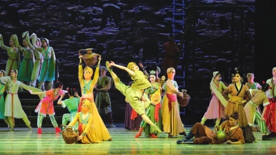 《大夢(mèng)敦煌》是一部富于傳奇色彩的四幕舞劇,以敦煌藝術(shù)寶庫(kù)的千百年創(chuàng)造歷史為背景,以青年畫(huà)師莫高與大將軍之女月牙的感情歷程為線索,演繹了一段可歌可泣的愛(ài)情故事。