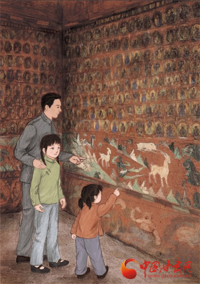 全書以20世紀40年代敦煌藝術(shù)研究所初創(chuàng)期為時代背景,講述了小主人公欣潔——個11歲的小女孩跟隨父親來到敦煌莫高窟工作生活,在敦煌成長學(xué)習(xí)的動人故事。欣潔從最開始對父親來敦煌的不理解,對在西部大漠生活的不習(xí)慣、不適應(yīng),到跟隨眾多的敦煌保護者學(xué)習(xí)臨摹敦煌壁畫,認識到敦煌文物的寶貴價值,到最后真心熱愛敦煌藝術(shù),成為了一位堅定的敦煌文物保護者。