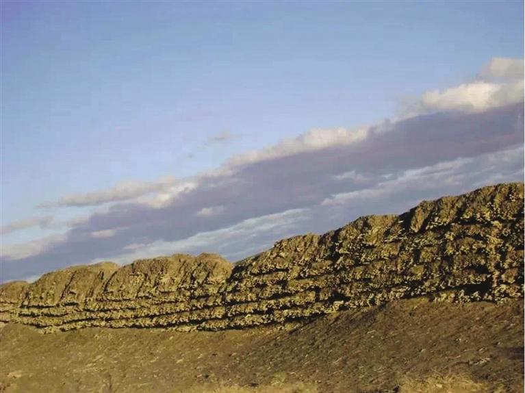 花海漢長城遺址位于玉門市花海鎮(zhèn)西泉村頭墩西側(cè)至二墩東側(cè),西起三墩,東至花海頭墩,全長約3.5公里。長城基寬約2.4米,用沙石、紅柳分層夯筑,最高部分保存有紅柳7層,是河西走廊漢代長城遺址中保存較完好的地段之一。(蘭州日報社全媒體記者 王萬盈 高慧霞 文/圖)