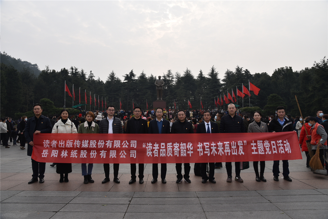 12月26日,是毛澤東主席誕辰127周年。讀者出版?zhèn)髅焦煞萦邢薰九c岳陽林紙股份有限公司在湖南韶山黨性教育基地,開展了“讀者品質(zhì)寄韶華,書寫未來再出發(fā)”聯(lián)合主題黨日活動(dòng),并現(xiàn)場聆聽黨課。