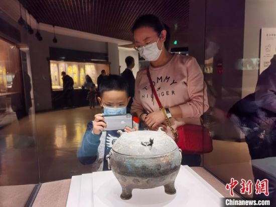 2月17日,甘肅省博物館迎來(lái)春節(jié)7天假期中的最后一波游客。圖為當(dāng)?shù)孛癖娫谡箯d參觀?!堟骸z