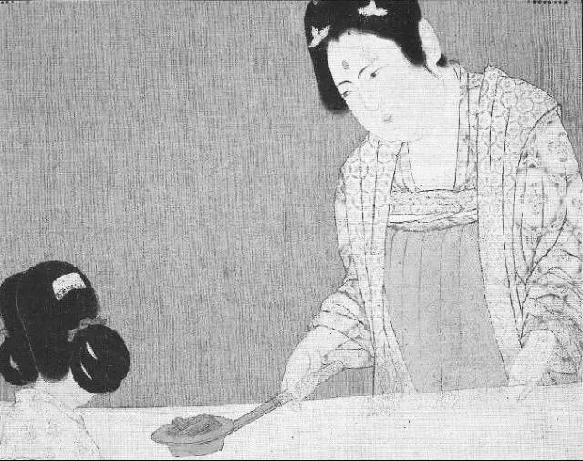 宋徽宗臨摹的唐代張萱《搗練圖》局部