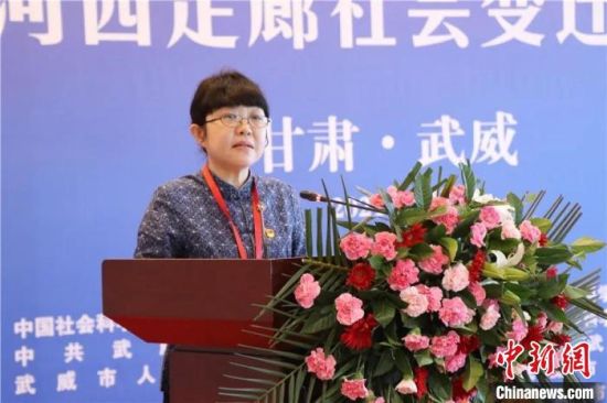 11日,“明清時期河西走廊社會變遷”學術(shù)研討會舉辦。圖為中國社科院古代史研究所黨委書記趙笑潔講話?!∥渫行侣剛髅郊瘓F供圖