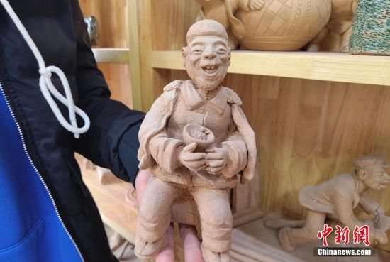 圖為泥塑作品展現(xiàn)人們娛樂場(chǎng)景。 劉玉桃 攝