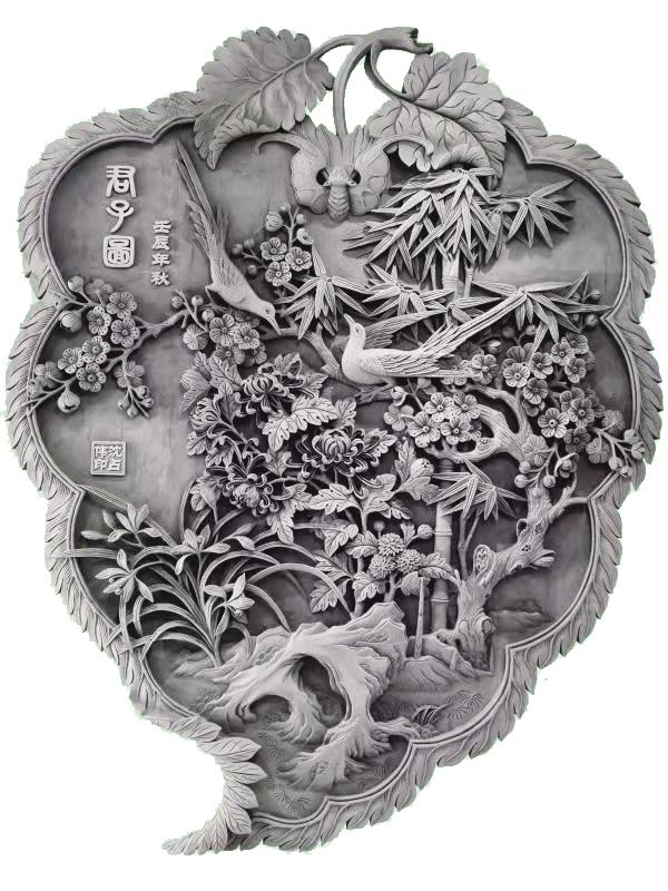 端詳沈占偉的作品,有栩栩如生的花鳥,大氣磅礴的山川,活靈活現(xiàn)的人物,能想到的體裁應(yīng)有盡有??梢哉f遠(yuǎn)看端莊大氣,近看細(xì)節(jié)精湛,尤其是對動(dòng)植物的刻畫,仿佛通過他的刻刀賦予了生命,在原本冰冷的磚塊上呼之欲出,生機(jī)勃勃。難能可貴的是,他并不會(huì)限制自己的創(chuàng)作體裁,每一幅作品都是匠心之作,都傾盡了他的心血。
