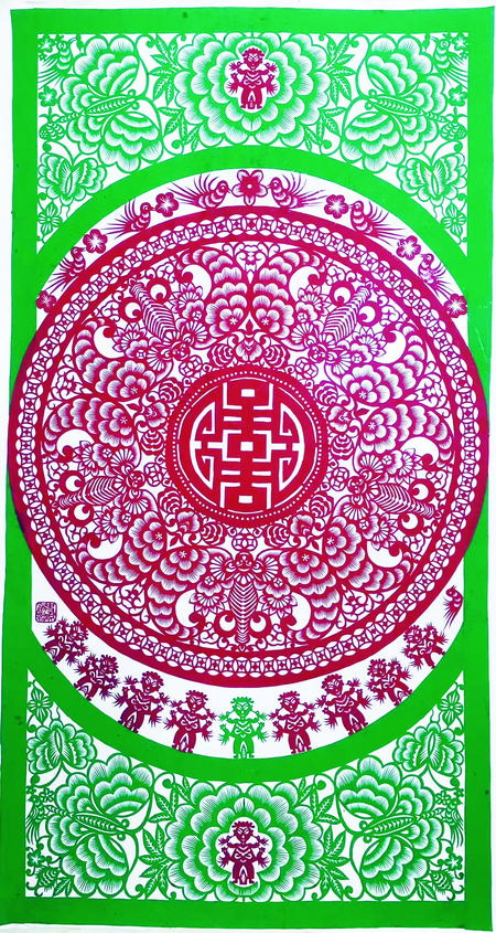 剪紙藝術(shù)題材多體現(xiàn)在祈福求安、避邪娛樂(lè)、孝道祭祀、喜事慶賀等等,例如五福娃娃、連年有余、大紅喜字、剪紙風(fēng)格也多樣化、多元化,剪紙作品一般初期主要是以對(duì)稱圖案為主,中后期主要發(fā)展成人物頭像、大型復(fù)雜圖案畫及反映和宣傳時(shí)代氣息的、人們喜聞樂(lè)見(jiàn)的多元素圖案,也將古代藝術(shù)和現(xiàn)代特征結(jié)合起來(lái)給人渲染一種藝術(shù)美、社會(huì)美、時(shí)代美的視覺(jué)欣賞、其作品妙趣橫生,秀美遒勁,雄渾大氣,喜聞樂(lè)見(jiàn),愛(ài)不釋手,廣泛流傳在城鄉(xiāng)之間。當(dāng)下,剪紙藝術(shù)作為非物質(zhì)文化遺產(chǎn),深受社會(huì)各個(gè)階層的人士喜愛(ài),把剪紙精神發(fā)揚(yáng)光大。傳承非遺,是我們共同的使命。