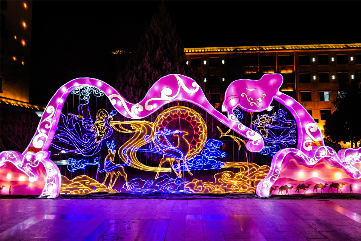 甘肅敦煌:文化彩燈點亮古郡夜空