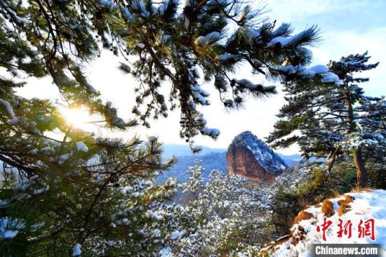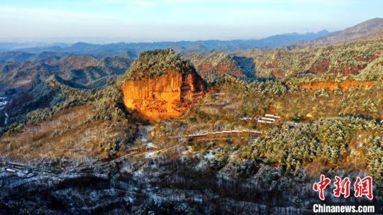 麥積山風(fēng)景區(qū)是中國(guó)南北方沉積地層在地表上層的分界線,又是黃河長(zhǎng)江兩大流域的分水嶺,雪后景色地貌獨(dú)特。 周文濤 攝