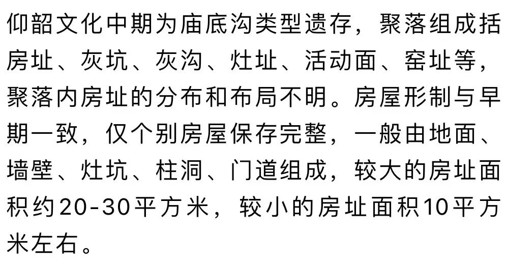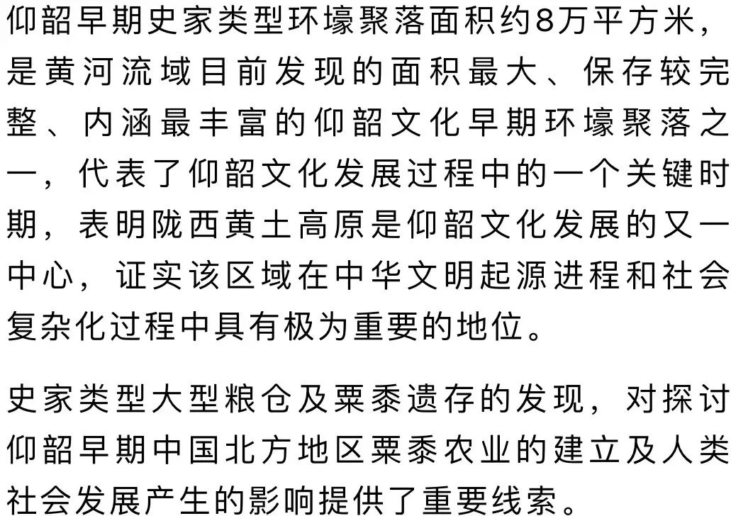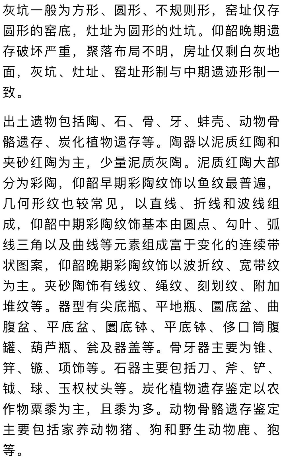2021年清理包括仰韶、齊家、漢、宋、明時期遺跡950余處。其中仰韶文化遺跡870處,漢代遺跡42處,宋明墓葬41座。