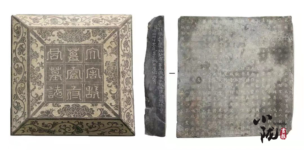 甬道正中出土墓志一合,時代明確,內(nèi)容豐富,顯示墓主為吐谷渾末代國王慕容諾曷缽第三子,“大周云麾將軍守左玉鈐衛(wèi)大將軍員外置喜王”慕容智。墓志首次提及武威南山區(qū)“大可汗陵”的存在,墓志左側(cè)面還刻有兩行利用漢字偏旁部首合成的文字,初步判斷為吐谷渾文,是目前所見依據(jù)漢文創(chuàng)造的年代最早的游牧民族文字。