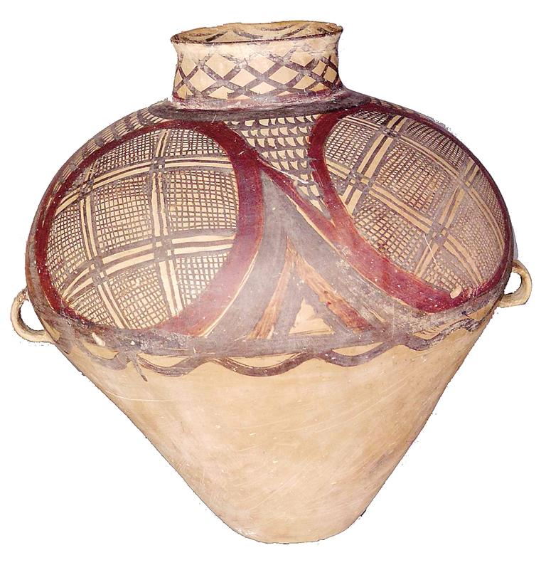 “這個(gè)彩陶盆做工精美,水波紋線條流暢優(yōu)美,真漂亮!”