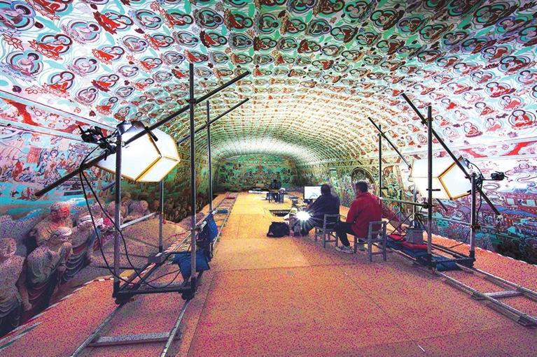莫高窟第148窟壁畫數(shù)字化采集現(xiàn)場。