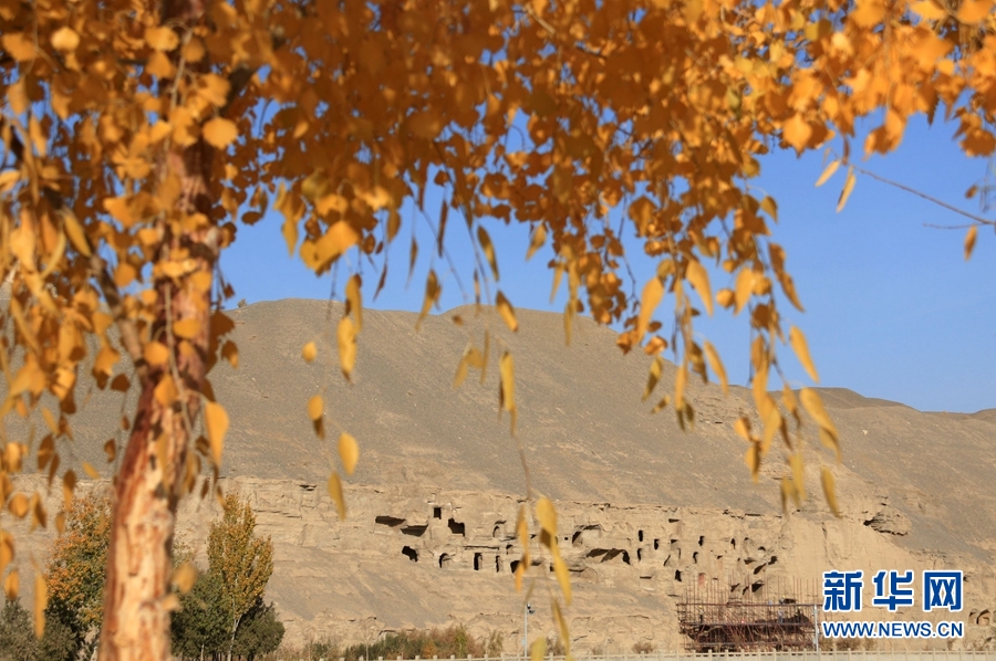 深秋時節(jié),世界文化遺產(chǎn)甘肅省敦煌市莫高窟盡染秋色,景色迷人,美不勝收。