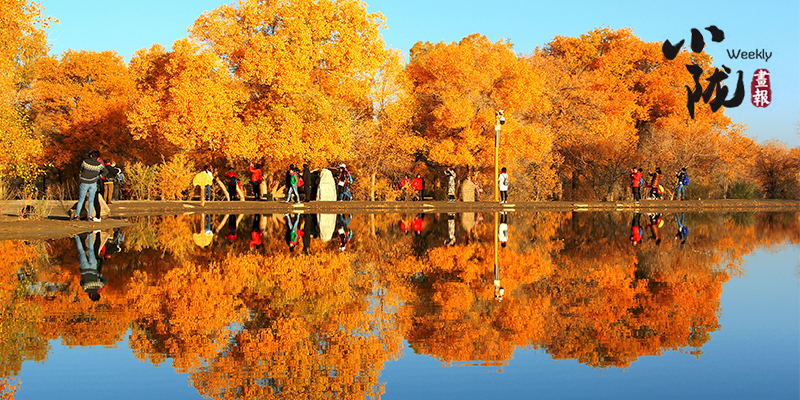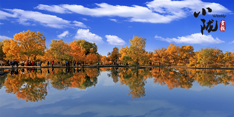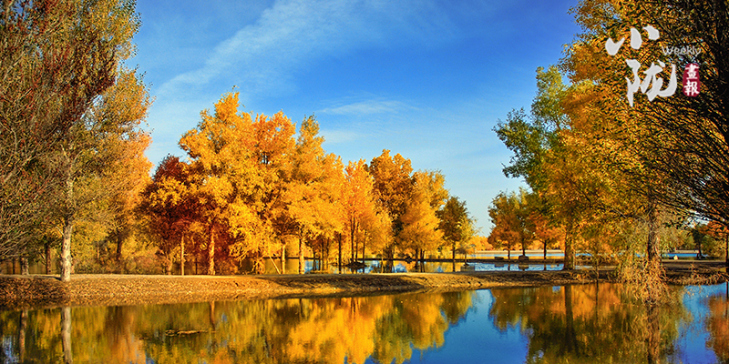 秋風(fēng)起時,一樹金黃在湛藍(lán)的天空下連綿不絕,映著湖面,和流云飄逸的藍(lán)天一起,綻放成一幅壯麗的圖景。