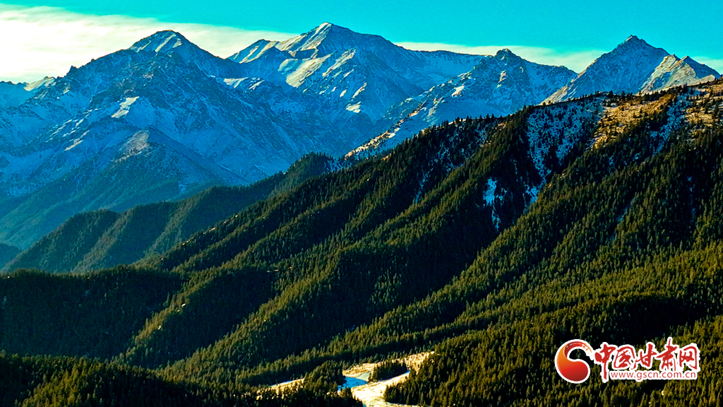 1月21日,雪后的祁連山國家公園甘肅省張掖段肅南片區(qū),遠(yuǎn)處的巍峨祁連山脈被皚皚白雪層層包裹,蒼松翠柏,浴雪草原,一派山舞銀蛇的壯美北國風(fēng)光。