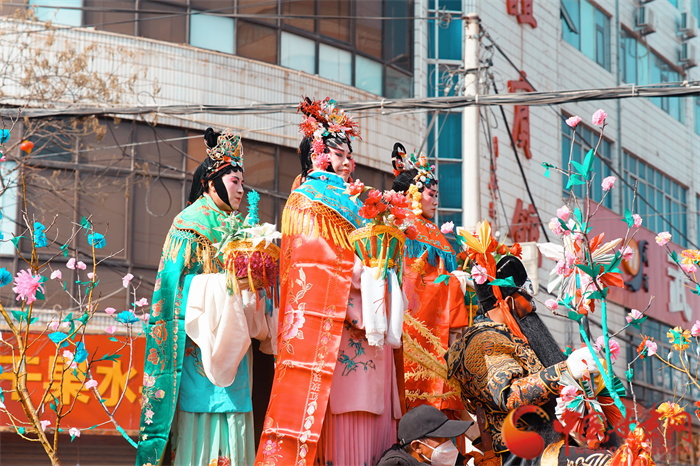 元宵佳節(jié)將至,甘肅莊浪縣群眾在豐富多彩的民俗活動中感受祥和喜慶的節(jié)日氛圍,迎接元宵節(jié)的到來。2月2日,民間藝人在平?jīng)鍪星f浪縣表演莊浪社火。