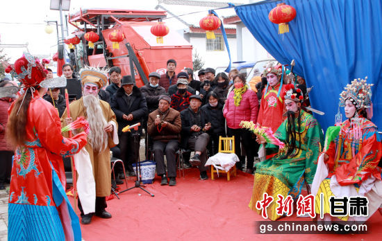中新網(wǎng)甘肅新聞2月8日電 (朱玲)農(nóng)歷正月,走進(jìn)華亭市西華鎮(zhèn)西塬村,山村隱掩處,遠(yuǎn)遠(yuǎn)聽聞古樸蒼勁的戲曲腔調(diào)傳來。村部院落里,村民或站或蹲,里三層外三層地將表演者圍了個(gè)水泄不通。