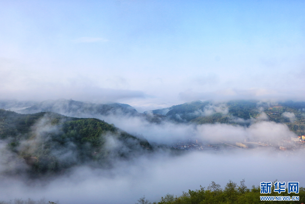 近日,甘肅省隴南市兩當縣上空云霧繚繞、煙波浩渺,縣城、山峰在霧海中若隱若現(xiàn),陽光從云霧間掠過,勾勒出一幅幅如夢如幻的美麗畫卷。新華網(wǎng)發(fā)(楊曉 攝)