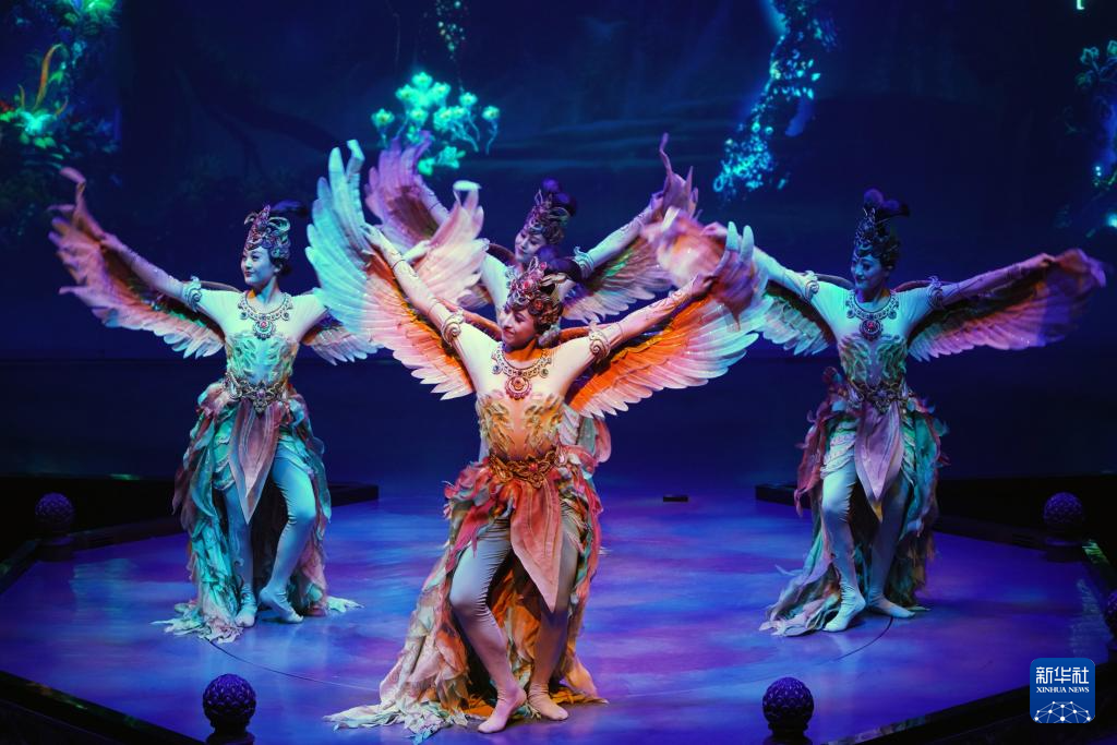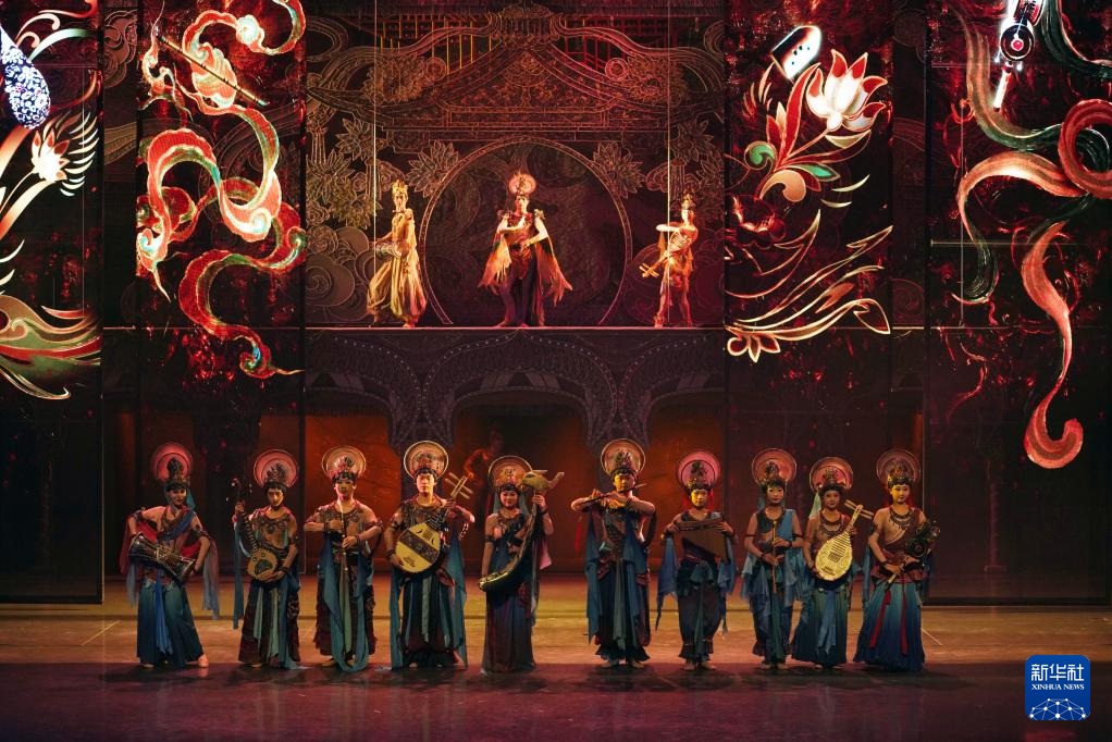 8月9日,演員在《樂動敦煌》中表演。新華社記者 馬寧 攝