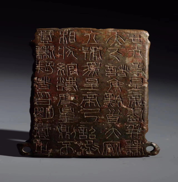 秦詔版,是指刻有秦始皇或秦二世統(tǒng)一度量衡詔書的銅版,有的鑲在鐵權(quán)、銅權(quán)上;有的四角有孔,用以釘在木頭的量器上。