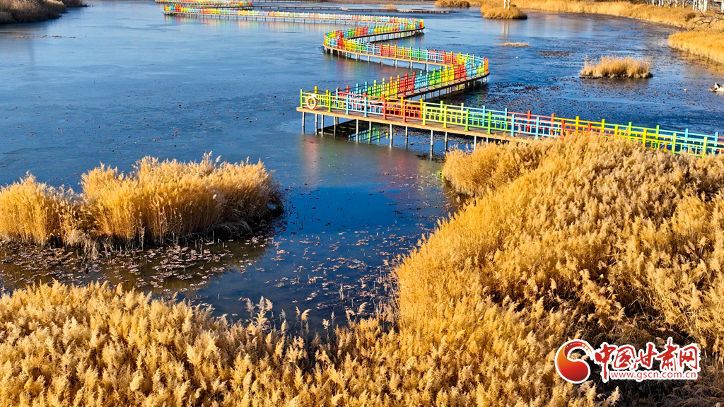 初冬時(shí)節(jié),張掖黑河濕地國家級自然保護(hù)區(qū)的蘆葦、蒲草等植物在秋風(fēng)、冬霜的吹拂下都變成了金黃色,密密的蘆花舞動(dòng)著裊娜的身姿,倩影婆娑,蘆葦叢里鳥鳴啾啾,整個(gè)濕地成為了一片金色的童話世界,讓人產(chǎn)生無限遐思。