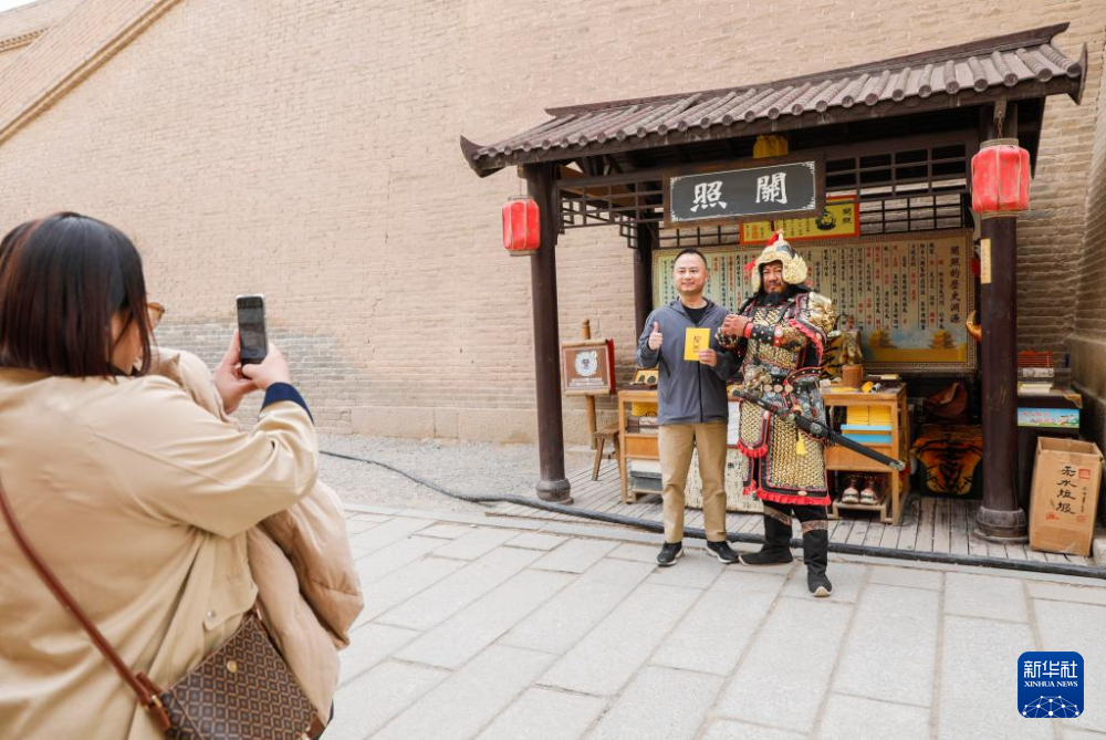 “關(guān)照”可理解為古時(shí)候的“護(hù)照”。嘉峪關(guān)的游客可以買上一份文創(chuàng)產(chǎn)品“關(guān)照”,聽“關(guān)長(zhǎng)”李森宣告自己“合法通關(guān)”,模擬一場(chǎng)告別故土、前往西域的出關(guān)儀式。