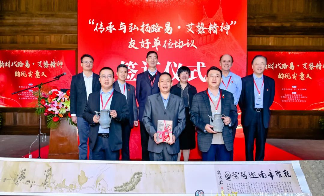 論壇上,遠隔重洋的新西蘭原總理珍妮·瑪麗·希普利和新中友好協會主席黎開盛做了視頻致辭。山丹艾黎紀念館、長汀國家歷史文化名城管委會、陜西寶雞長樂塬工業(yè)遺址公園管委會三方簽訂了“傳承與弘揚路易·艾黎精神”友好單位協議。三方互贈了紀念禮物,路易·艾黎捐贈的《乾隆帝南巡路線圖》珍貴文物復制藝術品落戶長汀。山丹艾黎紀念館館長作為活動的承辦方之一,做了《路易·艾黎人道主義精神在愛心社會建設中的現實意義》的交流發(fā)言。交流結束后,參會人員共同尋訪了艾黎在長汀的足跡,緬懷和追思他的精神。