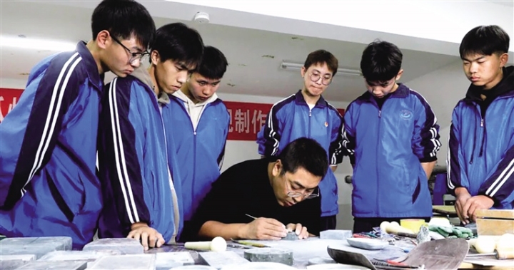著眼于促進(jìn)洮硯產(chǎn)業(yè)長期健康發(fā)展,讓絕技不絕、人才不斷,瓜州縣突出分層培育,采用“工藝美術(shù)大師—鄉(xiāng)村工匠—培育對象”梯次培養(yǎng)模式,開展“鄉(xiāng)村工匠”教學(xué)指導(dǎo),為洮硯產(chǎn)業(yè)儲備好鄉(xiāng)村實用人才。通過校企合作方式,把“洮硯上的絲路文化非遺項目”引入瓜州冶金中等專業(yè)學(xué)校課堂,探索出非物質(zhì)文化遺產(chǎn)校園傳承的新模式。開展“大手牽小手,傳承洮硯非遺文化”活動,讓中小學(xué)生近距離感受洮硯雕刻中蘊(yùn)含的豐富文化和精神內(nèi)涵,激發(fā)傳承優(yōu)秀民族文化的熱情。