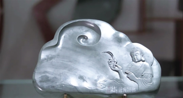 政策支持、資金投入、行業(yè)協(xié)會與合作組織的建立讓洮硯產(chǎn)業(yè)在瓜州穩(wěn)穩(wěn)扎下了根。在這片全新的文化土壤上,碧綠如藍(lán)的洮硯石汲取靈感,雕刻者以“一帶一路”為主題,以敦煌壁畫和瓜州張芝、玄奘、石窟、邊關(guān)等元素為題材,將絲路文化和洮硯制作技藝融合,打造出富有地域特色的文化旅游藝術(shù)產(chǎn)品。