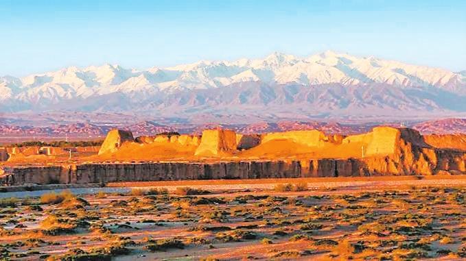 望南山,祁連山頂白雪皚皚;城前,榆木山下草場(chǎng)豐茂。當(dāng)年牛、羊、馬、駱駝成群,生活在這里的人們過著無憂無慮富足的生活。但一千年后,駱駝城已是一座廢城,物是人非。只有高大的城墻和殘?jiān)珨啾谡f明它曾存在過,也輝煌過。