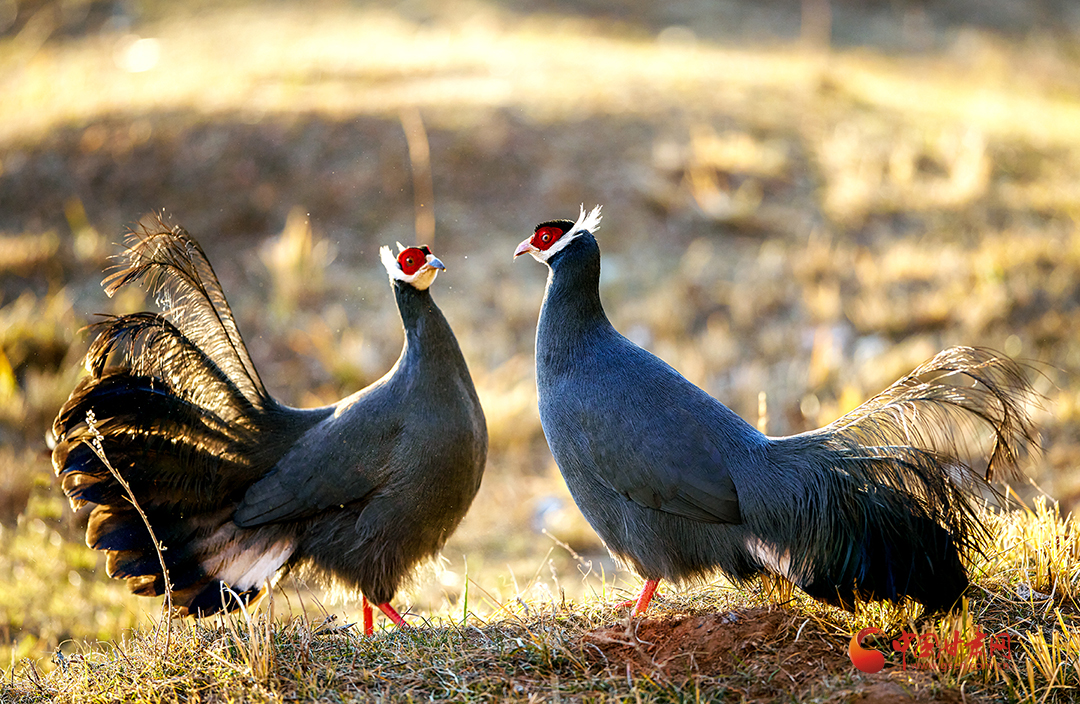 近日,祁連山國家公園甘肅省管理局張掖分局工作人員拍攝到國家二級(jí)保護(hù)野生動(dòng)物藍(lán)馬雞覓食嬉戲場(chǎng)景。