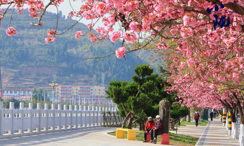 大街小巷種植的櫻花競相開放,粉色花朵綴滿樹冠,滿目春光、美不勝收,吸引眾多市民游客前來游玩賞花、拍照打卡。