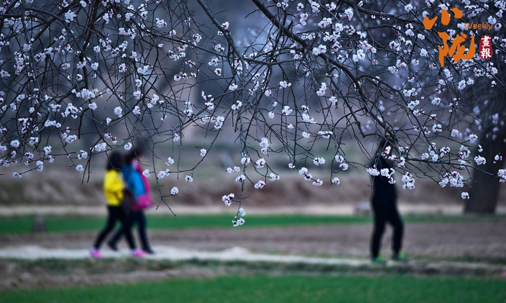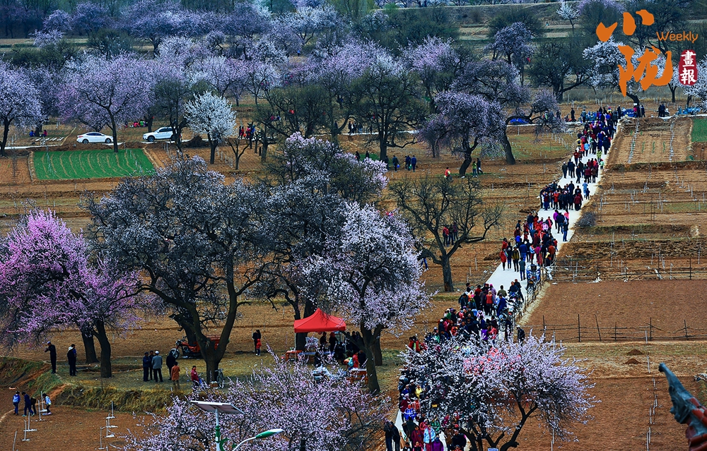 遠(yuǎn)遠(yuǎn)望去,到處是枝節(jié)橫生的杏樹(shù),處處是農(nóng)家小舍,隱藏其中,人在花中,花在眼前。前來(lái)賞花的游客蜂擁而至,在杏園里駐足拍照,流連忘返。