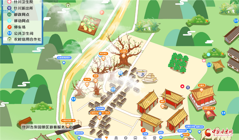 由于百年古梨園位于村落之間,占地面積大且道路蜿蜒曲折,許多外地游客在這里總會因為路況不熟或者看不懂紙質(zhì)地圖而走很多冤枉路。針對游客的這一痛點(diǎn),中國移動甘肅公司蘭州分公司依托云網(wǎng)融合和數(shù)字化服務(wù)優(yōu)勢,為什川梨園及周邊景區(qū)量身打造了5G+VR手繪地圖智慧導(dǎo)覽服務(wù),根據(jù)當(dāng)?shù)仫L(fēng)格特色定制手繪地圖,展示當(dāng)?shù)鼐包c(diǎn)及場所地標(biāo)名稱,并可結(jié)合語音講解充分展現(xiàn)歷史背景、文物故事、人物典故等景區(qū)相關(guān)信息,真正讓每一位游客感受到“一部手機(jī)游梨園”的便利。