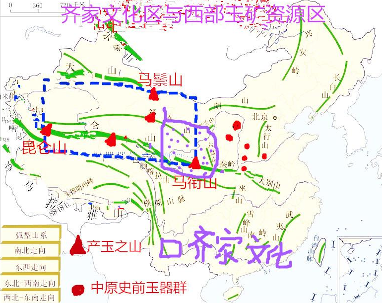 除肯定史前玉文化大傳統(tǒng)的價值之外,小說中的山羌、脩己、共工、三苗玉工、齊家人等人物形象也都與玉石有著密不可分的關(guān)系。山羌是來自鹽澤的牧羊女,居住在昆侖山巔的閬風(fēng)苑,“她頭發(fā)蓬松,頂戴玉勝,上身披虎皮褂,下身圍豹皮裙,三只兇猛青鳥在頭頂飛翔”,這一描述脫胎于《山海經(jīng)·西山經(jīng)》“又西三百五十里曰玉山,是西王母所居也。西王母其狀如人,豹尾虎齒而善哮,蓬發(fā)戴勝”的記載?!赌绿熳觽鳌犯斒隽酥苣峦踬e見西王母,西行至“群玉之山”攻取玉石的經(jīng)過??梢姡≌f中的牧羊女山羌是以西部出產(chǎn)美玉的昆侖山游牧部落首領(lǐng)西王母為原型的,作者還借她與脩己的交談交代了西玉東輸?shù)氖穼崱C懠菏殖贮S玉制成的耒錘,“到過昆侖山、祁連山、馬鬃山、馬銜山、岷山等一百五十座產(chǎn)玉石的大山”,她的“朝山”走完了能夠搜集到玉石信息的所有山川、河流。這里“一百五十座”的確數(shù)源自《山海經(jīng)》記載的140多座玉山,正是作者對自己熟稔典籍的機(jī)巧化用。近幾年,考古、歷史和人類學(xué)者們通過多達(dá)數(shù)十次的實地考察,已大致勾勒出一個西起昆侖山,東到馬銜山,南抵祁連山,北達(dá)馬鬃山,大致為200萬平方公里的西部玉礦資源分布區(qū)。作為幾乎每一次考察活動的中堅力量,馮玉雷依據(jù)自己親歷所得的學(xué)術(shù)成果,在小說中得心應(yīng)手地虛構(gòu)了一個擁有辨玉秘術(shù)的西荒國,并巧妙地將“共工怒觸不周山”的神話改編為觸不周而化三危?!渡袝?middot;禹貢》載“黑水、西河惟雍州……三危既宅,三苗丕敘……厥貢惟球琳瑯軒”,“球琳瑯軒”四個斜玉旁的字從文獻(xiàn)角度提示了三危出玉的線索。2017年8月,玉帛之路考察團(tuán)還曾在敦煌三危山旱峽山谷發(fā)現(xiàn)了玉礦。三苗相傳是黃帝至堯舜時期分布在長江中游以南的氏族部落,與共工同屬“四罪”,《尚書·舜典》載舜“竄三苗于三危”,又《史記·五帝本紀(jì)》謂舜“遷三苗于三危,以變西戎”。馮玉雷創(chuàng)造性地將“竄三苗于三危”的文獻(xiàn)記錄與最新學(xué)術(shù)成果相結(jié)合,將三苗描繪為南方精通治玉工藝的部落,他們的西遷不是流放和懲罰,而是一次官方組織的大規(guī)??辈?、采玉活動,目的是為了整理和打磨西部玉石資源以為中原王朝的建立提供精神信仰和意識形態(tài)的依據(jù)。