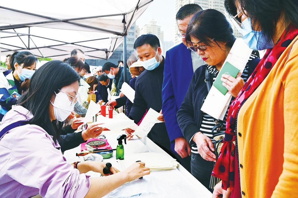 活動現(xiàn)場,甘肅省圖書館的工作人員帶領(lǐng)讀者體驗傳拓之美。 新甘肅·甘肅經(jīng)濟日報記者 瞿娟 攝