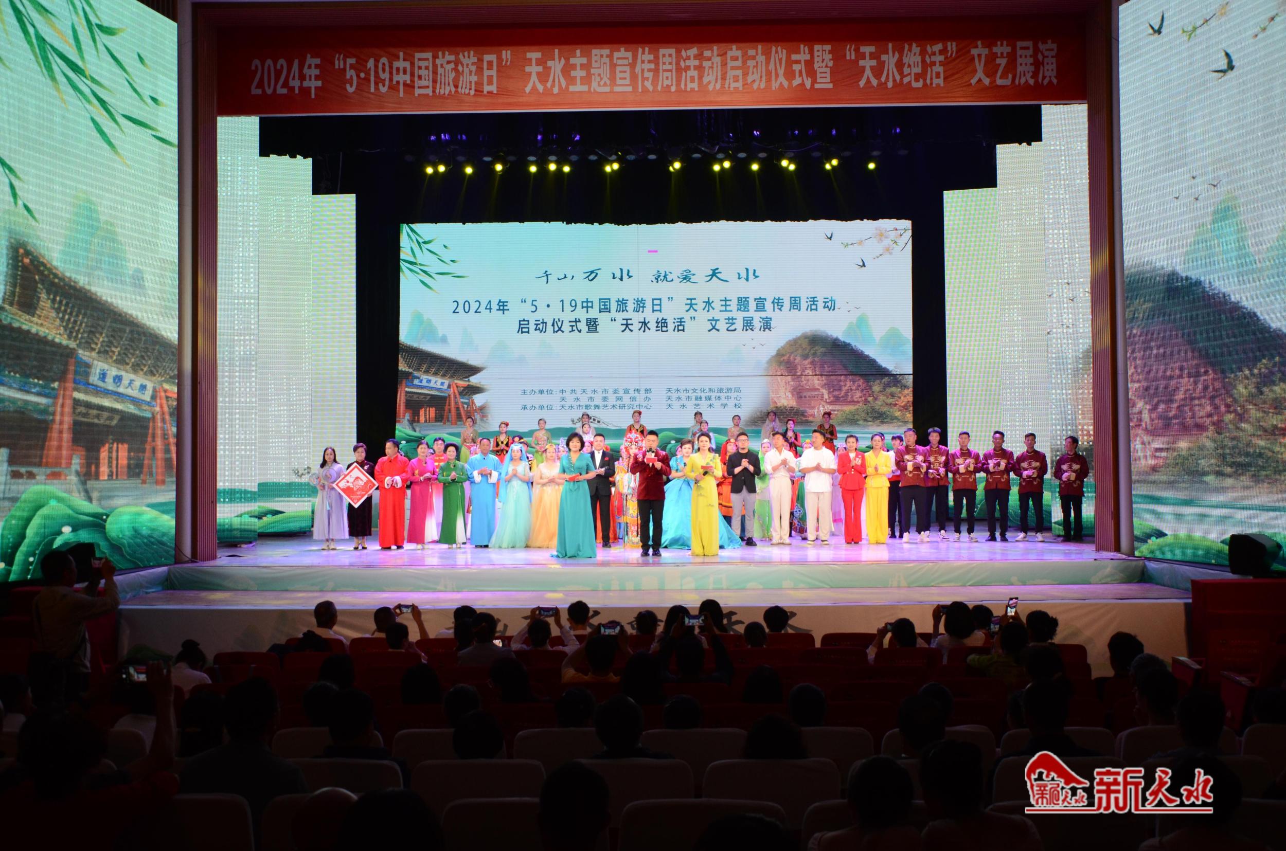 新天水訊【記者王曉馨】5月13日,2024年“5•19中國旅游日”天水主題宣傳周活動啟動儀式暨“天水絕活”文藝展演在秦州大劇院舉行。