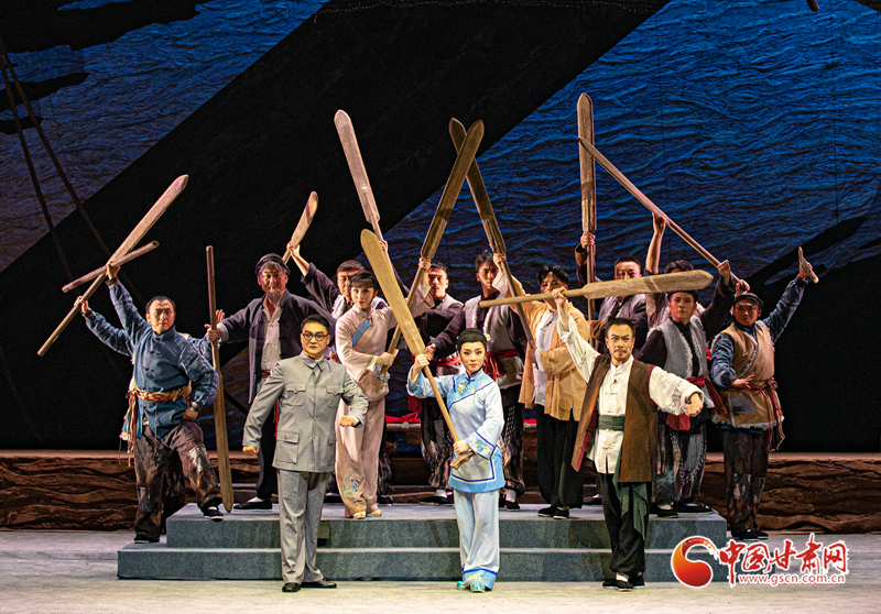 隴劇《大河?xùn)|流》于19日晚在甘肅黃河劇院成功首演。該劇以20世紀(jì)30年代末抗戰(zhàn)為背景,運用具有地方特色的隴劇形式,生動地描繪了大西北黃河邊的一群筏客子在國家危難之際,如何放下個人恩怨,團結(jié)起來支援抗戰(zhàn),組成水上大型運輸隊,將大量物資安全送達(dá)抗戰(zhàn)前線,創(chuàng)造了“羊皮筏子賽軍艦”的傳奇故事。(甘肅省隴劇院供圖)