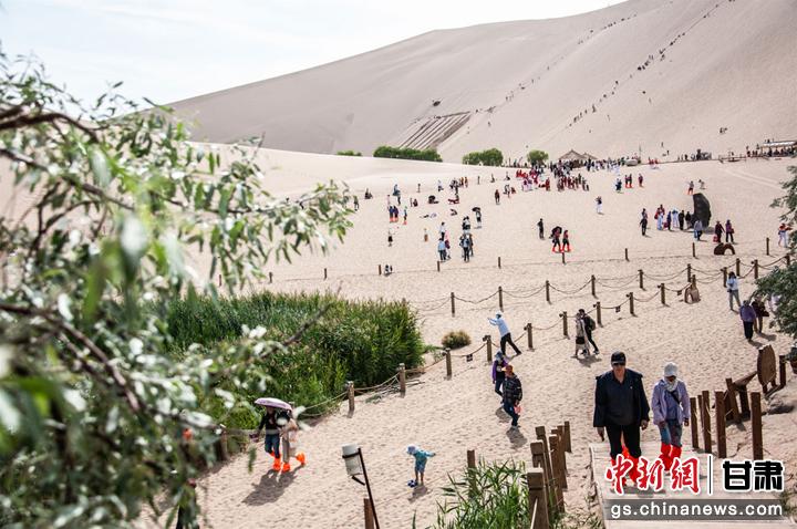 6月10日,敦煌市鳴沙山下,一場以敦煌市舞龍隊為首的20個健身舞蹈隊為廣大市民和游客獻上一臺臺精彩的舞蹈盛宴,吸引了眾多游客圍觀、拍照,在敦煌大漠度過一個難忘的端午節(jié)。王斌銀 攝