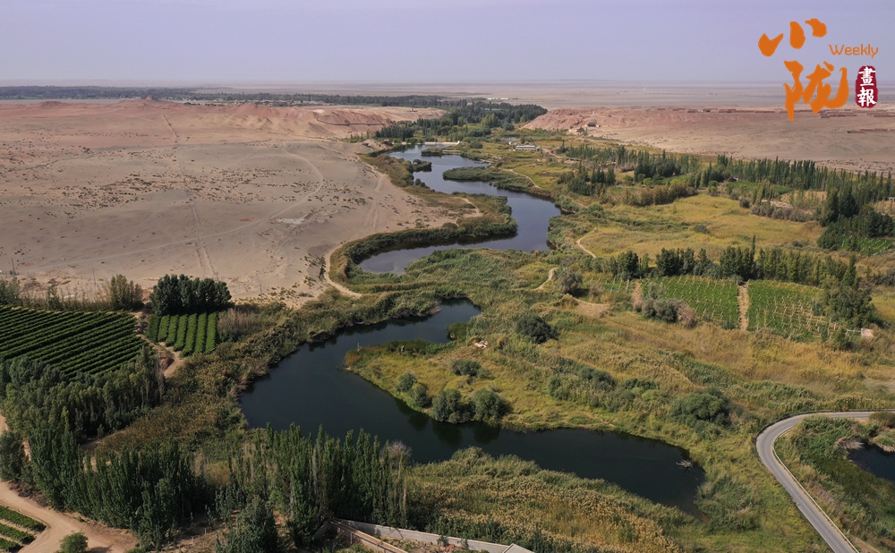 幾灣清水,挺拔修直的白楊樹,高大密集的蘆葦蕩,蔥蔥郁郁的灌木林綿延數(shù)公里,野麻灣已成為陽關(guān)濕地至水尾綠洲過渡帶一道獨(dú)特的風(fēng)景線。