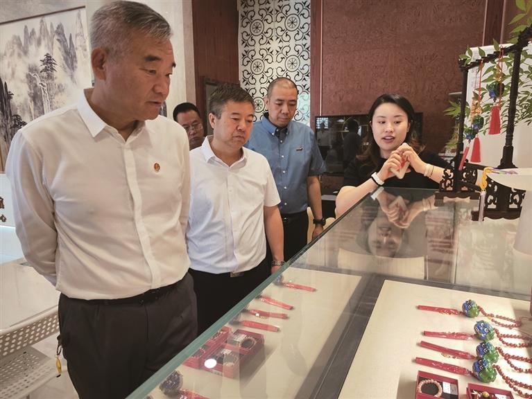 調(diào)研組興致勃勃地參觀了蘭州市博物館數(shù)字文創(chuàng)中心,并對蘭州市博物館今年的爆款文創(chuàng)“蘭小五”產(chǎn)生了極大興趣。在工作人員的演示下,通過手機(jī)掃描,“蘭小五”活靈活現(xiàn)地呈現(xiàn)在觀眾眼前,這令調(diào)研組感到非常有趣。調(diào)研組一致認(rèn)為,“蘭小五”的打造十分成功,生動(dòng)彰顯了蘭州市博物館在文物保護(hù)利用方面所做的努力和大膽嘗試,希望在文創(chuàng)產(chǎn)品的打造上進(jìn)一步大膽創(chuàng)新,讓更多的文物“活起來”,更好地弘揚(yáng)傳播歷史文化。