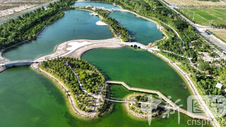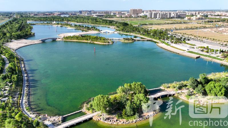 2024年7月27日,航拍甘肅省酒泉市金塔縣城西生態(tài)湖,綠意盎然,生機勃勃,構成了“戈壁水鄉(xiāng)”的獨特畫卷。 中新社發(fā) 曹紅祖 攝