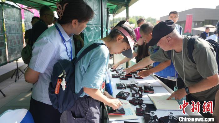 8月3日,《莫高窟(二)》特種郵票首發(fā)儀式上,民眾在蓋郵戳和紀(jì)念戳。戴文昌 攝