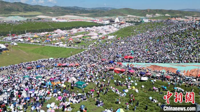 8月4日,民眾在當(dāng)周草原浪山聚會。當(dāng)日,第22屆九色甘南香巴拉旅游藝術(shù)節(jié)在甘肅省甘南藏族自治州當(dāng)周草原開幕。人們身著節(jié)日盛裝載歌載舞、歡聚一堂,馬隊巡游、千人鍋莊舞等活動精彩上演。九色甘南香巴拉旅游藝術(shù)節(jié)既是民眾浪山聚會的節(jié)日盛會,也是展現(xiàn)發(fā)展成就、擴大對外開放的重要窗口,更是展示民俗文化、促進(jìn)廣泛交往交流交融的有效載體。中新社記者 九美旦增 攝