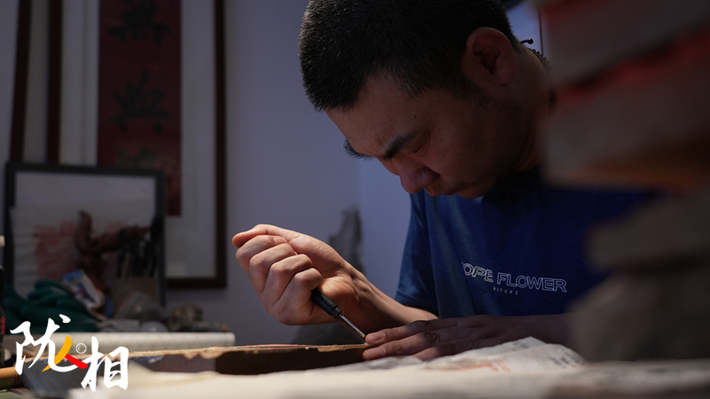 已過(guò)不惑之年的李安樂(lè),是靜寧縣一名普通美術(shù)教師,在技藝的精巧與熱愛(ài)的加持下,獲得了市級(jí)傳統(tǒng)雕版印刷非遺傳承人稱(chēng)號(hào)。