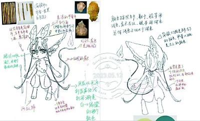 “這是我們設(shè)計的吉祥物‘活字’,它的周邊懸浮著一圈漢簡,頭是動漫風(fēng)格的獸首,兩個獸角是甲骨片的樣式,棕色的身體呼應(yīng)了埋藏西北漢簡的沙漠。”負(fù)責(zé)工作室運營的學(xué)生興致勃勃地介紹著設(shè)計圖。他們告訴記者,吉祥物尾巴參照三星堆青銅神樹做成了燈盞的樣式,上面承載一個火種。它既有指引之義,又象征著中華文化傳承不滅。